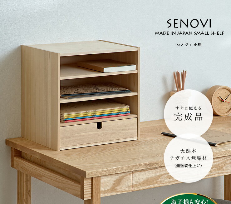 【国産/完成品/天然木アガチス無垢材】学習机用収納 SENOVIsmallshelf(セノヴィ小棚) おしゃれ 学習机 学習デスク 収納 収納棚 プリント棚 書類棚 小物棚 小物入れ 木製 子供部屋 杉工場