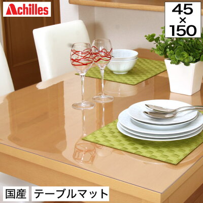 日本製 テーブルマット 1.5mm厚 45×150cm テーブルクロス ビニール 撥水 透明 家具やテーブルをキズや汚れから守る。透明度が高いテーブルマット ベタツキ軽減 TV台 学習机 お子様がいるご家庭にもオススメ デスクマット アキレス achilles