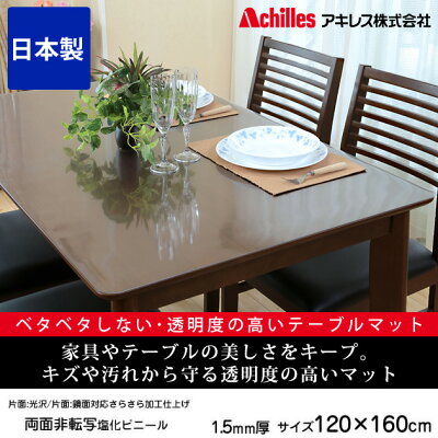【送料無料】日本製 テーブルマット 1.5mm厚 120×160cm テーブルクロス ビニール 撥水 透明 家具やテーブルをキズや汚れから守る。透明度が高いテーブルマット ベタツキ軽減 TV台 学習机 お子様がいるご家庭にもオススメ デスクマット アキレス achilles