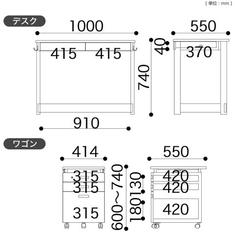 Color Size 関連商品 【コロナデスクシリーズ】 デスク100 ワゴン付き デスク4点セット 上棚100 シェルフ100